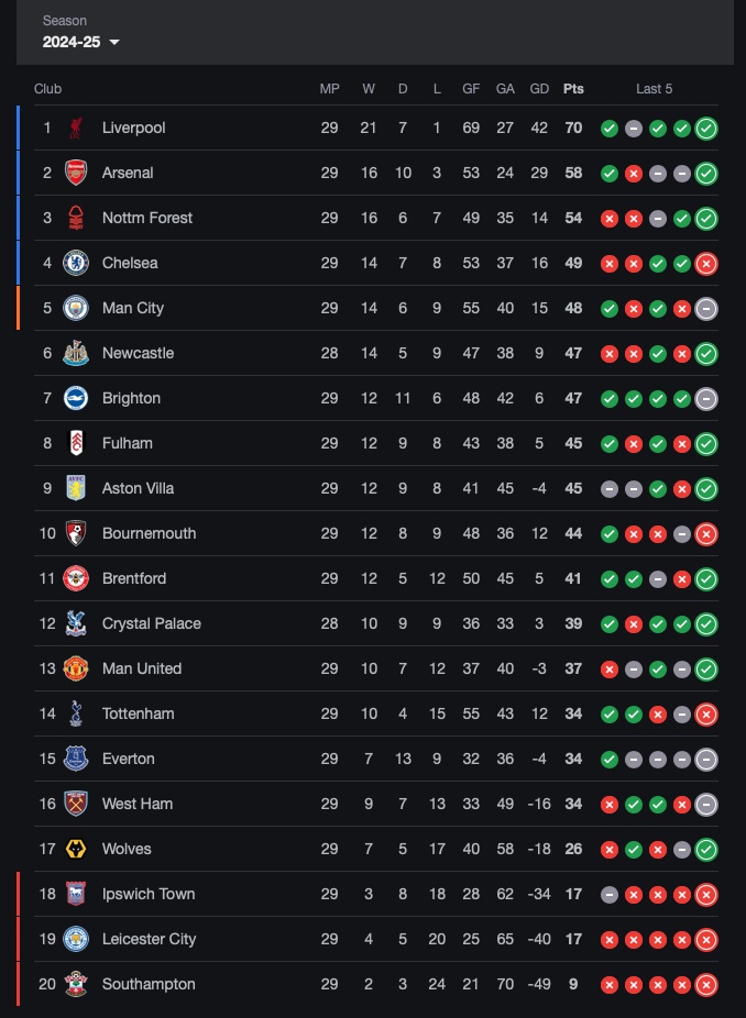 The visitors Ipswich face an extreme uphill task to avoid relegation, Kieran McKenna’s side have nine points to close down to stay up currently with just nine games remaining. They are also going through a winless run too having lost their last four games in the league. It started with a home loss to Tottenham (1-4), before a away defeat to Man United (3-2), an away defeat to Crystal Palace (1-0) and then the most recent game ended with a home loss to Nottingham Forest (2-4).